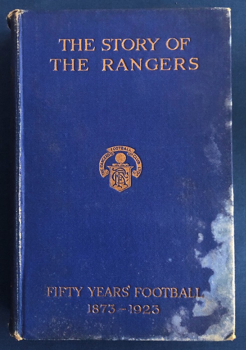1923 – “The Story of The Rangers – Fifty Years Football 1873-1923” by John Allan. Calfskin (navy blue leather) bound edition with gold script and Rangers badge on front cover. Complete with 3-foot long sheet “Table of Rangers League Results 1890-1923” on parchment type paper in an envelope glued into the back inside cover of the book.