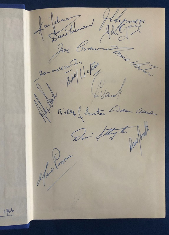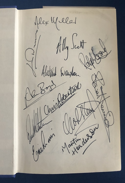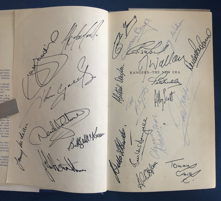 1966 – “Rangers – The New Era” by William Allison. Three different copies, all with dust jackets, signed by many players etc. For a run down on people that have signed, please view these books on the ‘Autographed Items’ page.