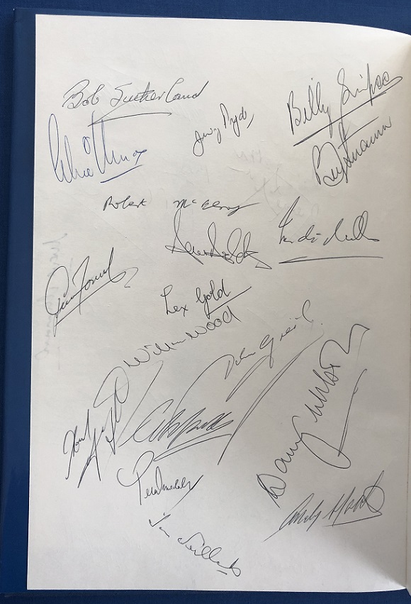 1973 – “Growing With Glory” by Ian Peebles. Hardback with dust jacket and signed by numerous players. For a run down on people that have signed, please view this book on the ‘Autographed Items’ page.