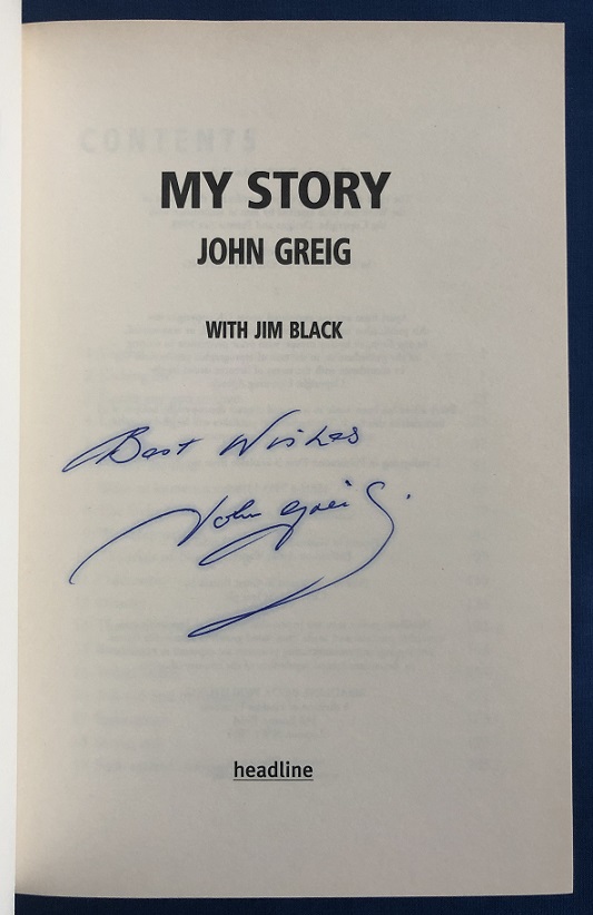 2005 – “John Greig – My Story” by John Greig. Hardback with dust jacket, signed by John Greig.