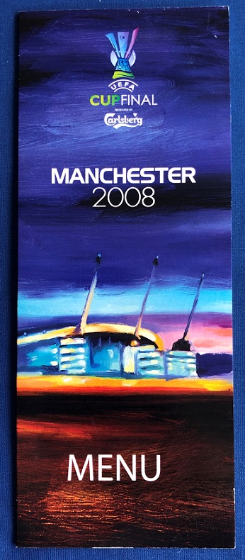14th May 2008 – Hospitality menu from 2008 UEFA Cup Final in Manchester.