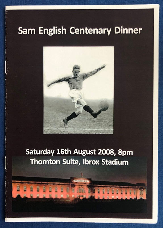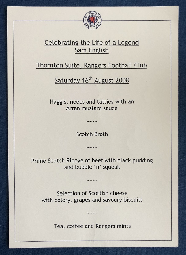 16th August 2008 – Programme and menu from the Sam English – ‘Life of a legend’ Dinner held at Ibrox.
