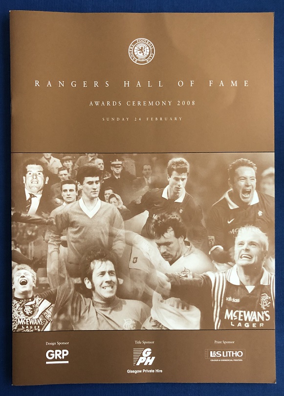 24th February 2008 – Programme from the Hall of Fame Awards Ceremony held at the Hilton Hotel, Glasgow.