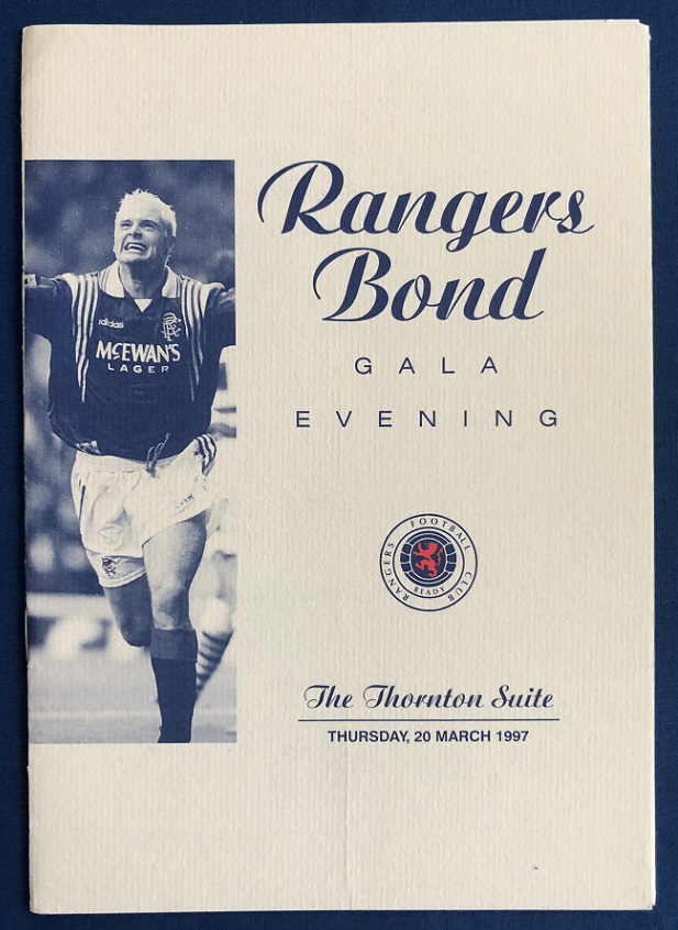20th March 1997 – Programme from the Rangers Bond Gala Evening held at Ibrox.