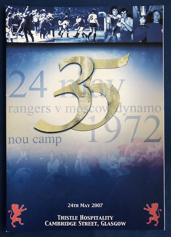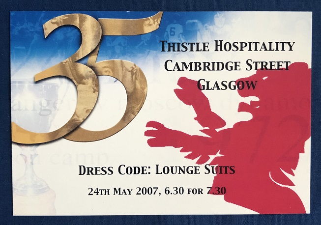 24th May 2007 – Programme and ticket from the European Cup Winners Cup 35th Anniversary Dinner held at the Thistle Hotel, Glasgow.