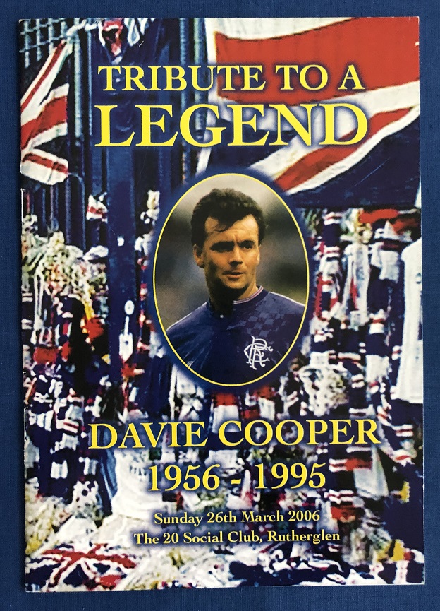 26th March 2006 – Programme from the Davie Cooper – Tribute To A Legend Dinner held at the 20 Social Club, Rutherglen.