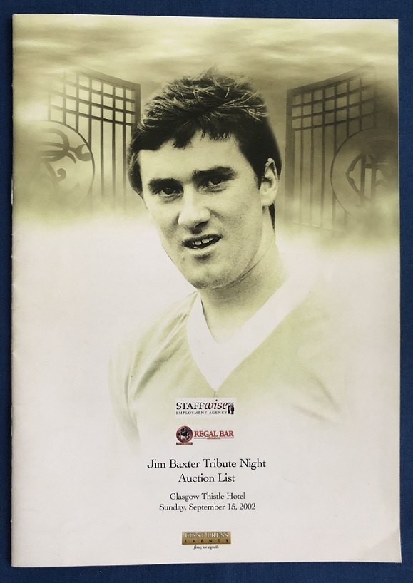 15th September 2002 – Programme, ticket and auction list from the Jim Baxter Tribute Night held at the Thistle Hotel, Glasgow.