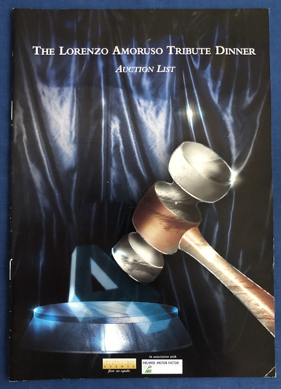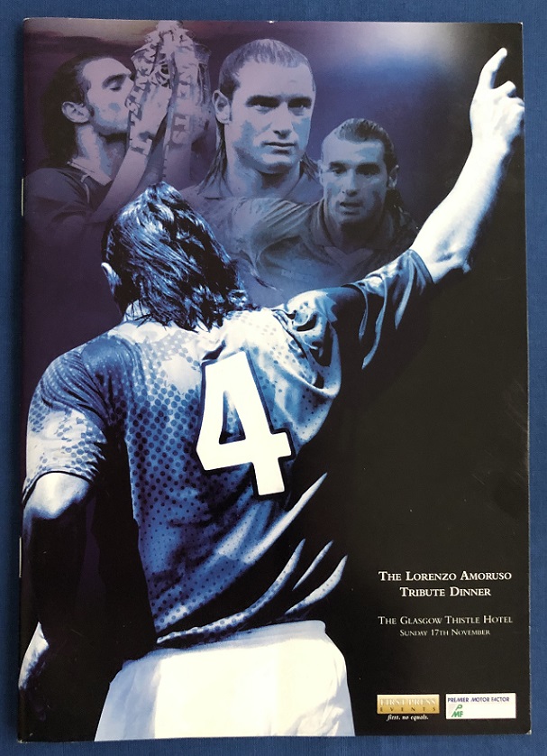 17th November 2002 – Programme and auction list form the Lorenzo Amoruso Tribute Dinner held at the Thistle Hotel, Glasgow.