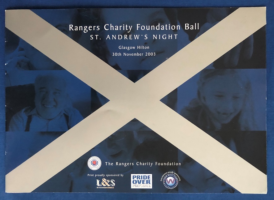 30th November 2003 – Programme from the Rangers Charity Foundation Ball held at the Hilton Hotel, Glasgow.
