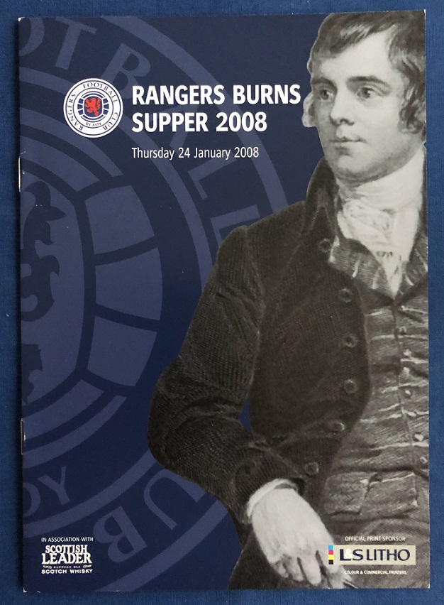 24th January 2008 – Programme from the Rangers Burns Supper.