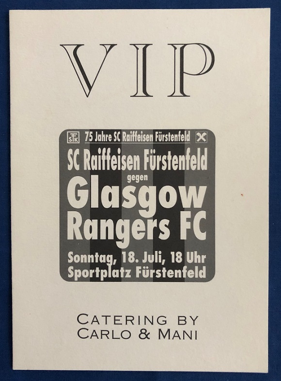 18th July 2004 – VIP hospitality menu from the SC Raiffeisen Furstenfield v Rangers friendly match.