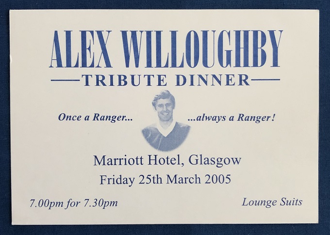 25th March 2005 – Programme, ticket and menu from the Alex Willoughby Tribute Dinner held at the Marriott Hotel, Glasgow.
