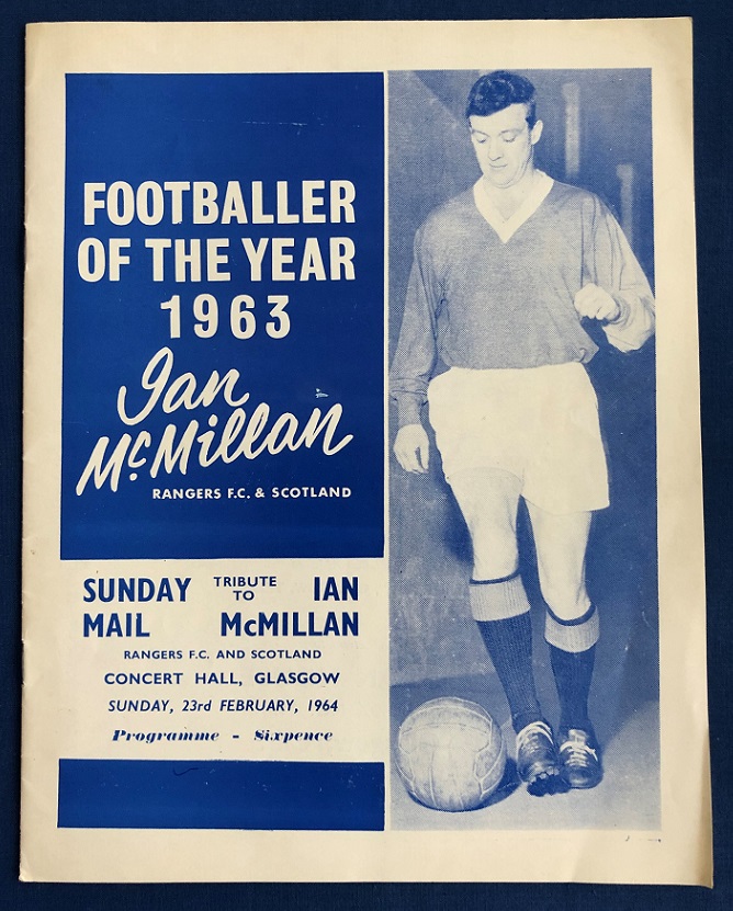 2nd February 1964 – Programme for the presentation of the Rex Kingsley Scottish Player of the Year 1963 award to Ian McMillan.