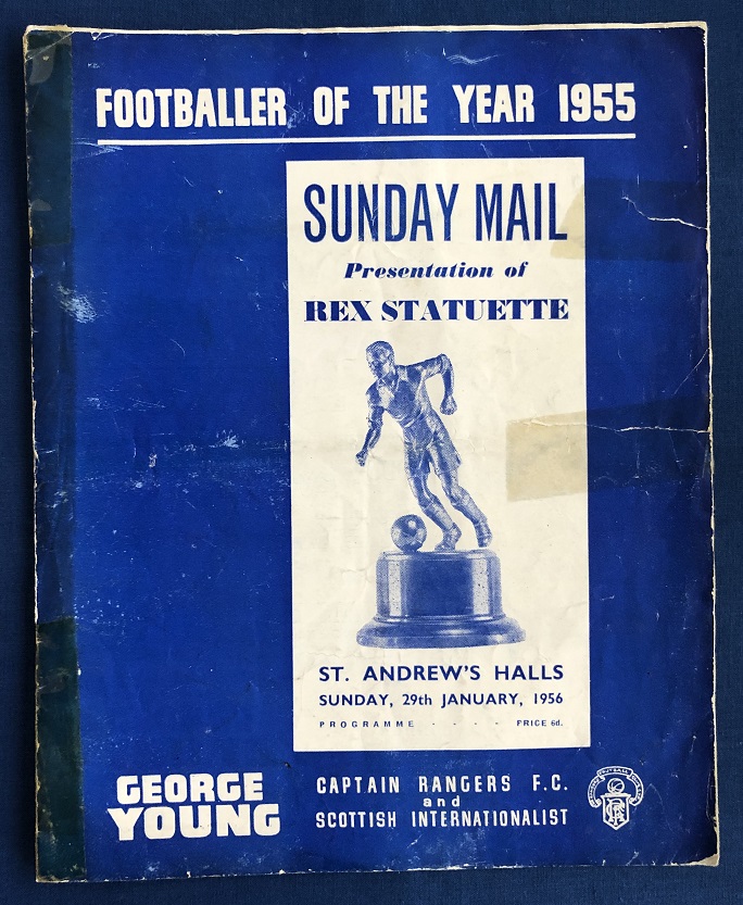 29th January 1956 – Programme for the presentation of the Rex Kingsley Scottish Player of the Year 1955 award to George Young.