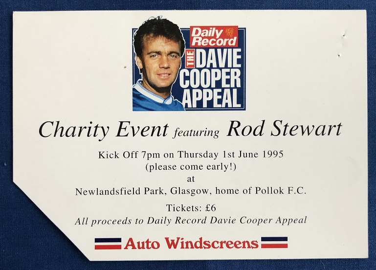 1st June 1995 – Ticket for the Davie Cooper Charity Event held at Newlandsfield Park, Glasgow.