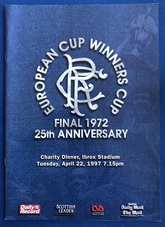 22nd April 1997 – Programme and anniversary booklet (with printed autographs) from the European Cup Winners Cup 25th Anniversary Charity Dinner held at Ibrox.