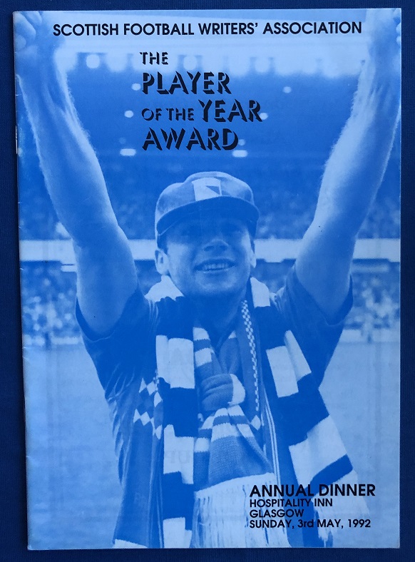 3rd May 1992 – Programme for the presentation of the Scottish Football Writers 1992 ‘Player of the Year’ award to Ally McCoist.