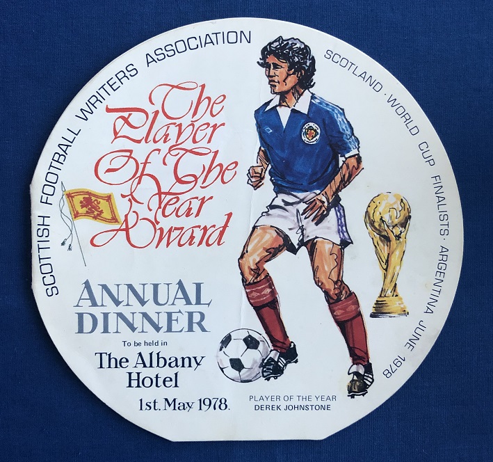 1st May 1978 – Programme for the presentation of the Scottish Football Writers 1978 ‘Player of the Year’ award to Derek Johnstone.