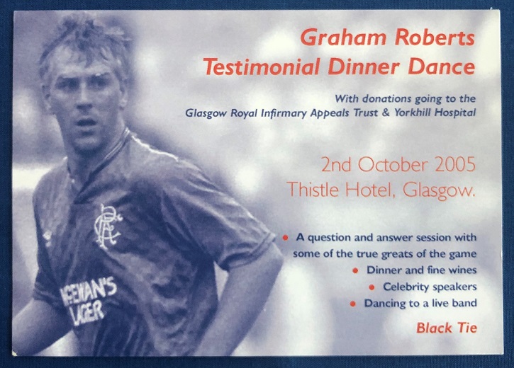 2nd October 2005 – Programme and ticket from Graham Roberts Testimonial Dinner Dance held at the Thistle Hotel, Glasgow.