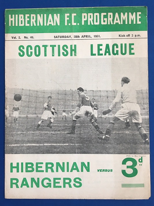28th April 1951 – Hibernian v Rangers Scottish League match played at Easter Road in front of 40,000. Rangers lost the match 4-1, with the Rangers goal being scored by Simpson.