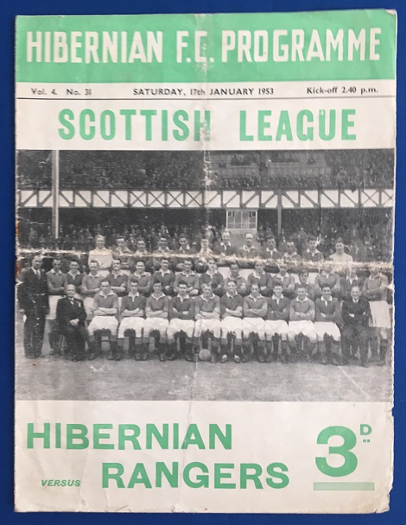 17th January 1953 – Hibernian v Rangers Scottish League match played at Easter Road in front of a crowd of 60,500. The match ended in a 1-1 draw, with Rangers goal being scored by Grierson.