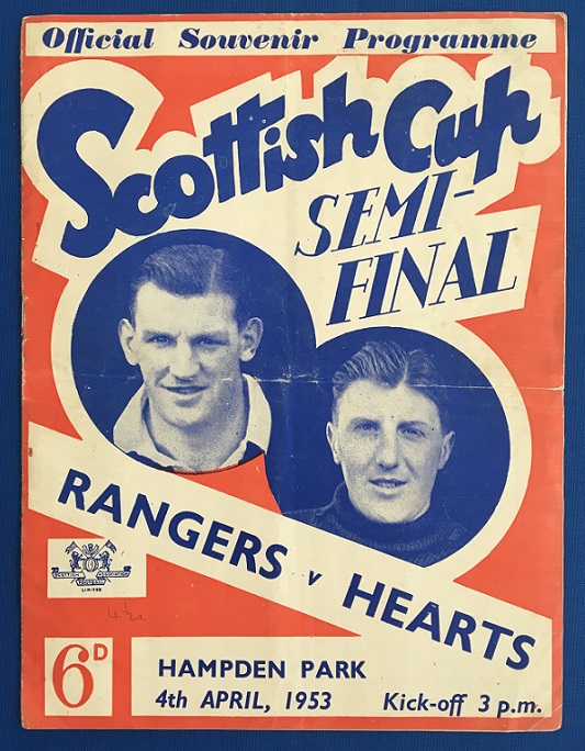 4th April 1953 – Rangers v Hearts Scottish Cup Semi-Final tie played at Hampden in front of 116,262. Rangers won the match 2-1, with goals from Grierson & Prentice.