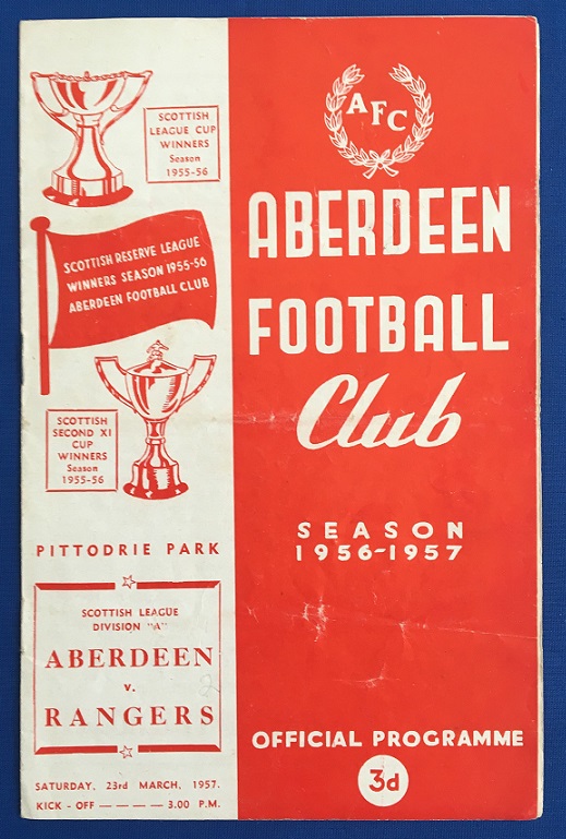 23rd Match 1957 – Aberdeen v Rangers Scottish League match played at Pittodrie in front of a crowd of 26,500. Rangers won the match 2-0, with goals from Hubbard & Simpson.