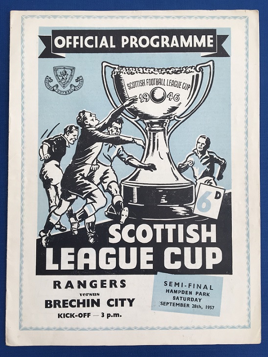 28th September 1957 – Rangers v Brechin City Scottish League Cup Semi-Final played at Hampden in front of 28,453. Rangers won the match 4-0, with goals from Melrose (2), Shearer and a Paterson own goal.