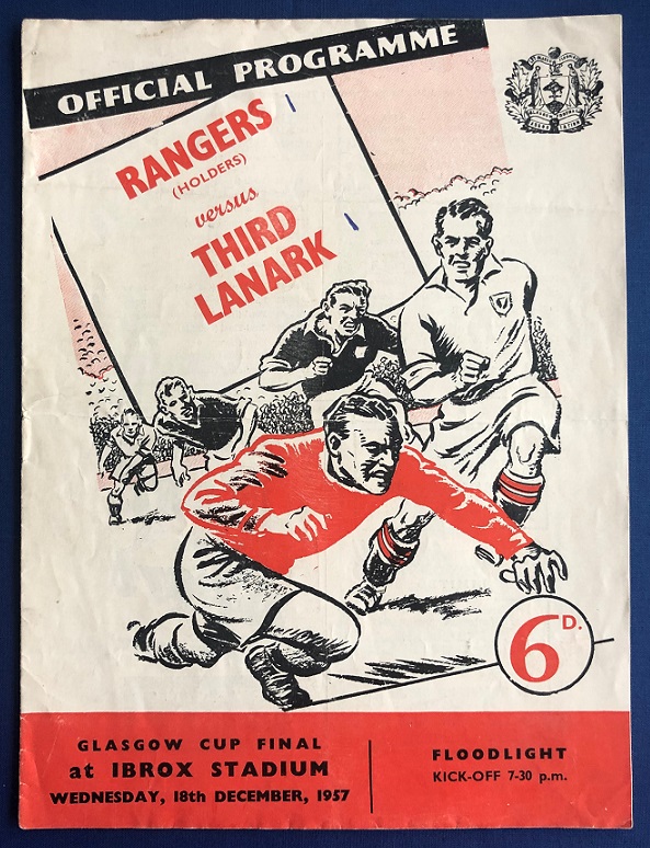 18th December 1957 – Rangers v Third Lanark Glasgow Cup Final played at Hampden in front of a crowd of 15,000. The match ended in a 1-1 draw, with the Rangers goal coming from a Lewis own goal. Rangers won the replay 4-3 on the 31st March 1958, Brand (3) & Millar scoring for Rangers.