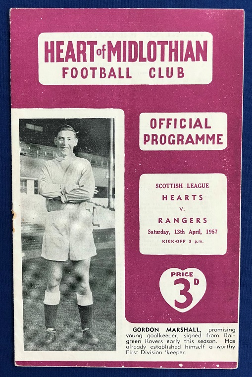 13th April 1957 – Hearts v Rangers Scottish League match played at Tynecastle in front of a crowd of 49,000. Rangers won the match 1-0, with Simpson scoring.