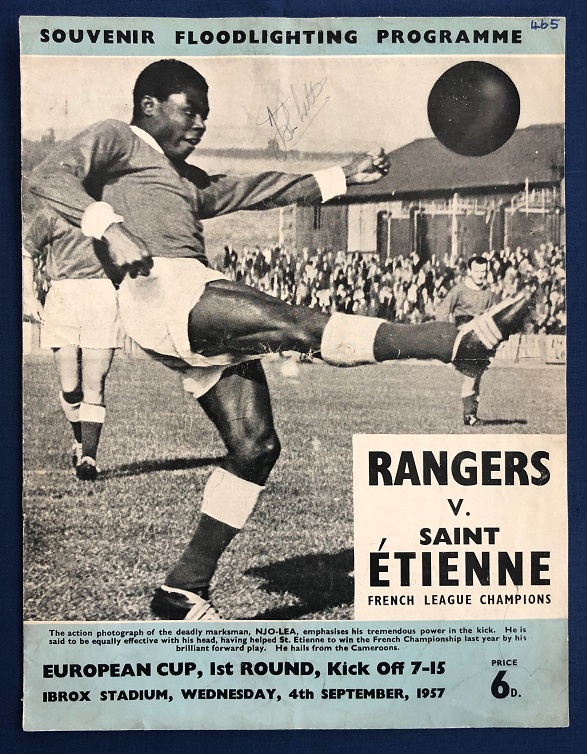 4th September 1957 – Rangers v St. Etienne European Cup match played at Ibrox in front of 85,000. Rangers won the match 3-1, with goals from Kitchenbrand, Scott & Simpson.
