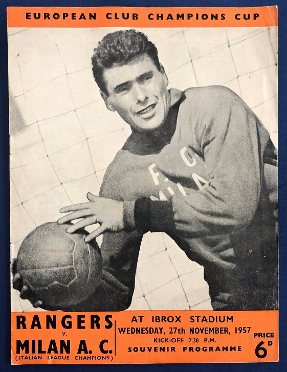 27th November 1957 – Rangers v A.C. Milan European Cup tie played at Ibrox in front of 85,000. Rangers lost the match 4-1, with Murray scoring for Rangers.