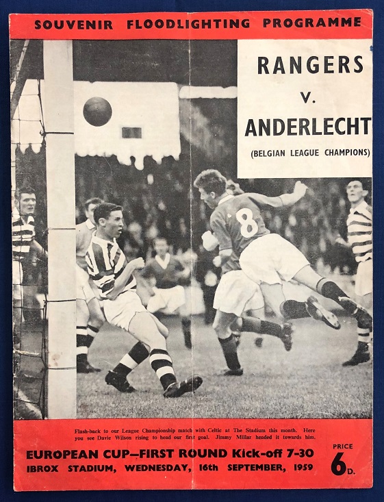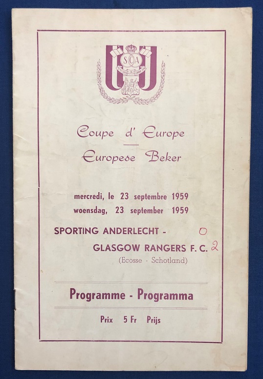 23rd September 1959 – RSC Anderlecht v Rangers European Cup tie played at the Emile Versé Stadium in front of 40,000. Rangers won the match 2-0, with goals from Matthew & McMillan.