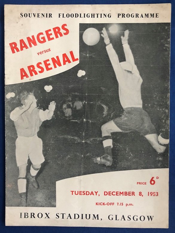 8th December 1953 – Rangers v Arsenal British Championship tie played at Ibrox in front of 80,000. Rangers lost the match 2-1, with McCulloch scoring for Rangers.