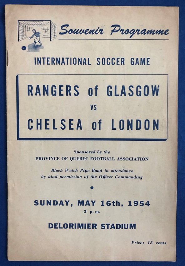 16th May 1954 – Rangers v Chelsea friendly match played at Delorimier Stadium, Montreal, Canada, in front of 11,000. Rangers won the match 1-0, with Young scoring.