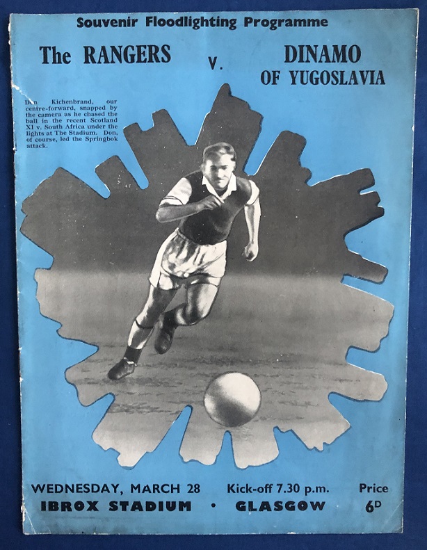 28th March 1956 – Ranger v Dinamo Zagreb friendly match played at Ibrox in front of 45,000. The match ended in a 3-3 draw, with Rangers goals scored by Simpson, Grierson & Murray.