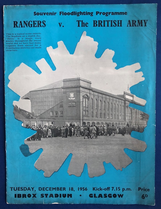 5th October 1954 – Rangers v The British Army friendly match played at Ibrox in front of 30,000. Rangers won the match 3-0, with goals from Grierson (2) & Waddell.