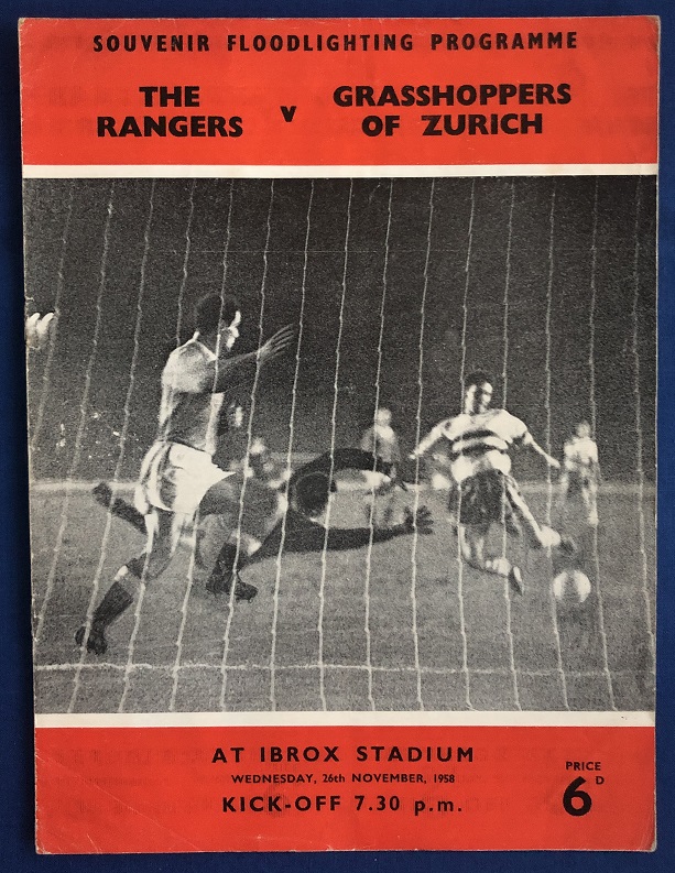 26th November 1958 – Rangers v Grasshoppers Zurich friendly played at Ibrox in front of a crowd of 35,000. Rangers won the match 3-0, with goals from Murray, Hubbard & Brand.