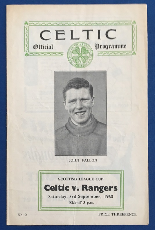 3rd September 1960 – Celtic v Rangers Scottish League Cup tie played at Celtic Park in front of 50,000. Rangers won the match 2-1, with goals from Davis & Brand.