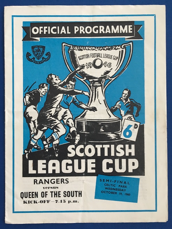 19th October 1960 – Rangers v Queen of the South Scottish League Cup Semi-Final played at Celtic Park in front of a crowd of 17,000. Rangers won the match 7-0, with goals from Brand (3), Millar (2), McMillan & Scott.