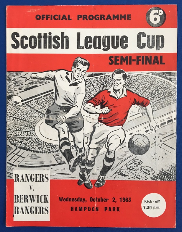 2nd October 1963 – Rangers v Berwick Rangers Scottish League Cup Semi-Final tie played at Hampden in front of a crowd of 16,000. Rangers won the match 3-1, with goals from Wilson, Brand & Forrest.