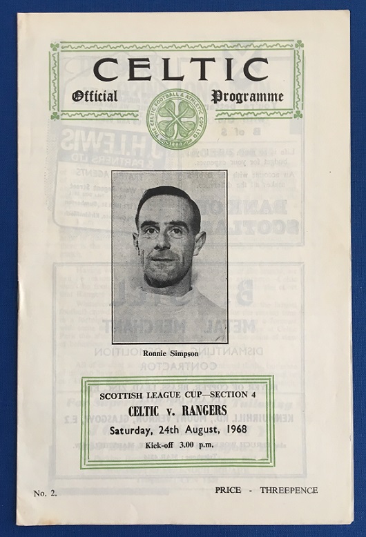 24th August 1968 – Celtic v Rangers Scottish League Cup match played at Celtic Park in front of 75,000. Rangers lost the match 1-0.