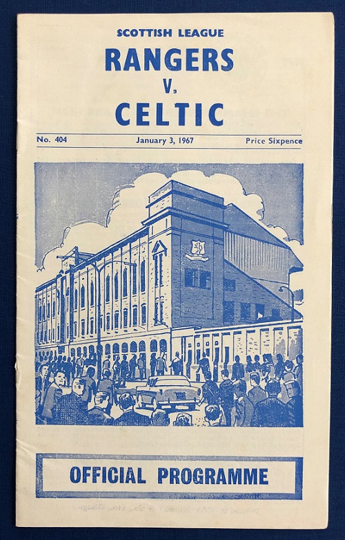 3rd January 1967 – Programme for the postponed Rangers v Celtic Scottish League match due to be played at Ibrox. The rearranged match took place on the 6th May in front of a crowd of 78,000 and ended in a 2-2 draw with Rangers goals scored by Jardine & Hynd.