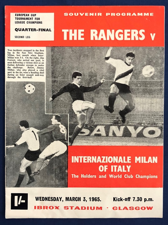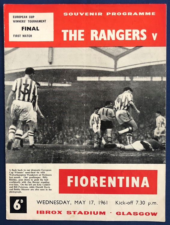17th May 1961 – Rangers v Fiorentina European Cup Winners Cup Final played at Ibrox in front of a crowd of 80,000. Rangers lost the match 2-0.