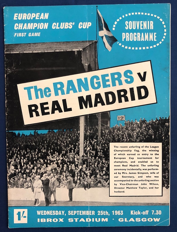 25th September 1963 – Rangers v Real Madrid European Cup tie played at Ibrox in front of a crowd of 81,215. Rangers lost the match 1-0.