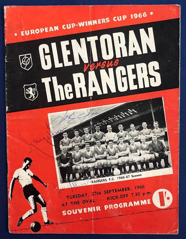 5th October 1966 – Rangers v Glentoran European Cup Winners Cup match played at Ibrox in front of a crowd of 33,473. Rangers won the match 4-0, with goals from Johnston, D. Smith, Setterington & McLean.