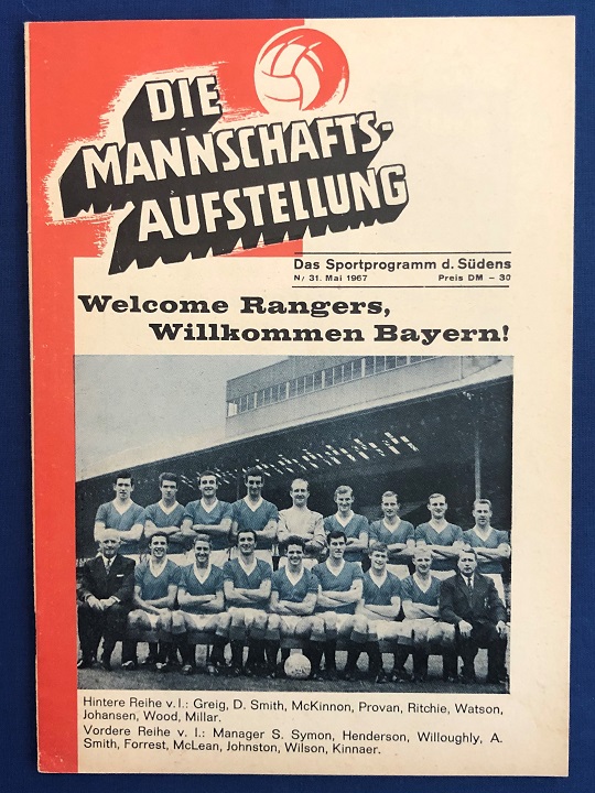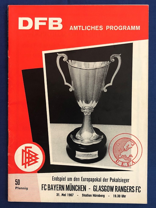31st May 1967 – Both official programmes from the Rangers v Bayern Munich European Cup Winners Cup Final played at the Stadtisches Stadion, Nuremberg, West Germany, in front of a crowd of 69,500. Rangers lost the match 1-0.