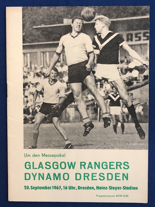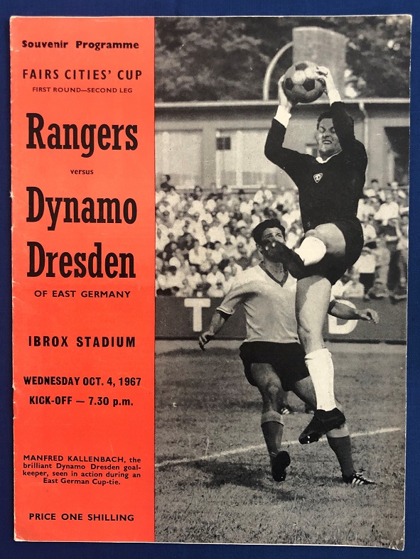 4th October 1967 – Rangers v Dynamo Dresden Inter-Cities Fairs Cup match played at Ibrox in front of 60,000. Rangers won the match 2-1 with goals from Penman & Greig.