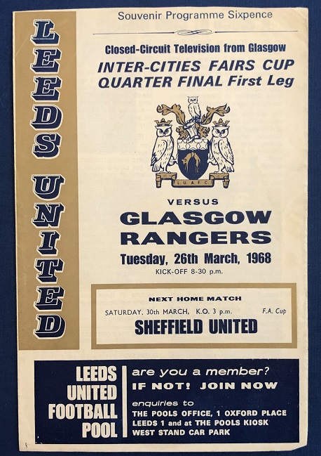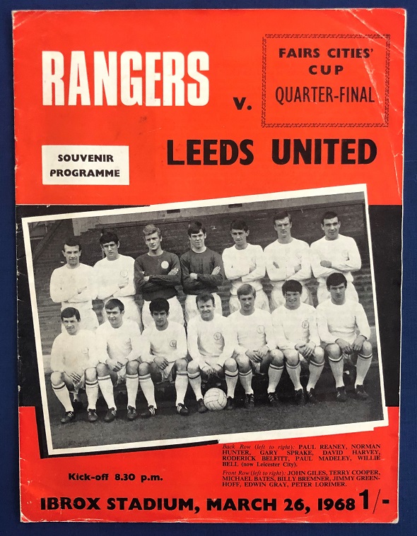 9th April 1968 – Leeds United v Rangers Inter-Cities Fairs Cup Quarter-Final (2nd leg) match played at Elland Road in front of 50,498. Rangers lost the match 2-0.