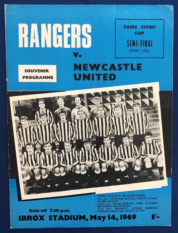 21st May 1969 – Newcastle United v Rangers Inter-Cities Fairs Cup Semi-Final (2nd leg) match played at St. James’ Park in front of 61,000. Rangers lost the match 2-0.